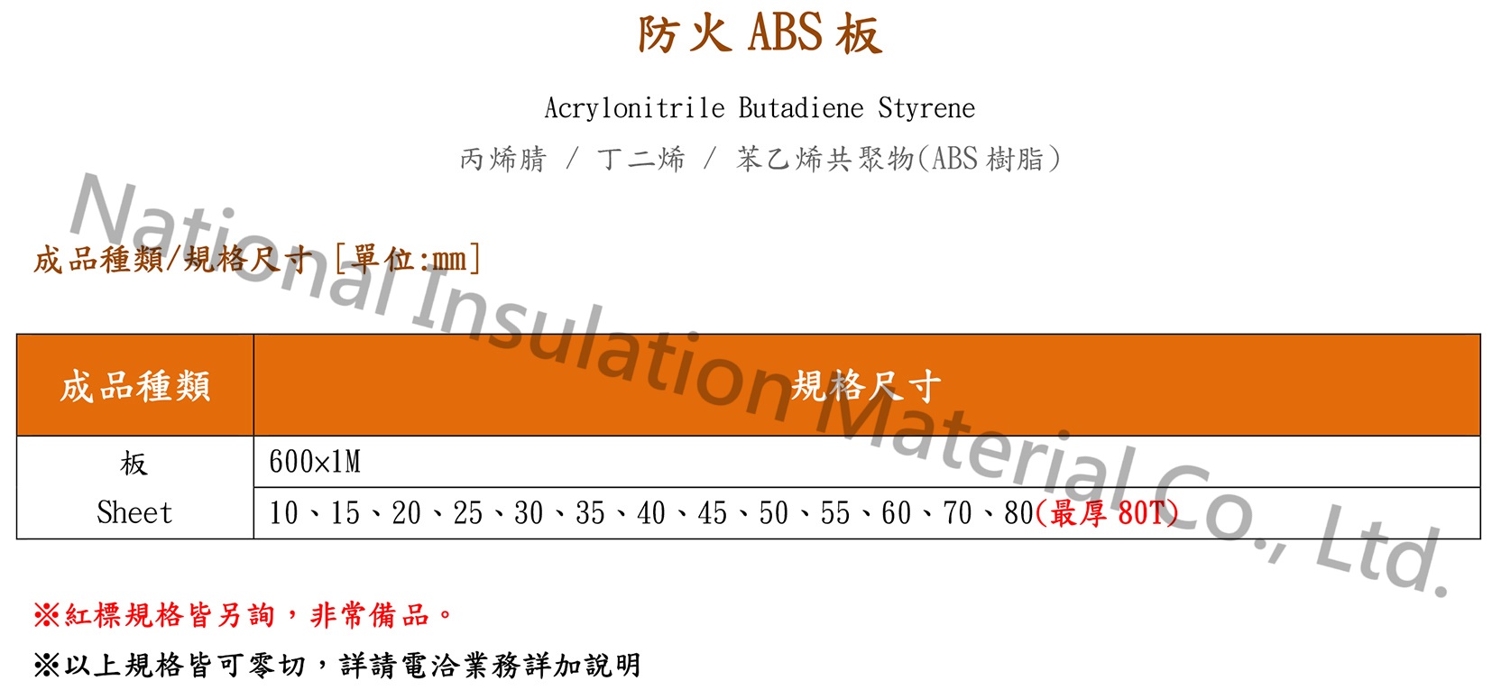 銷售方式:製造銷售目標市場:台灣詢價付款方式:T.T. 電匯競爭特點接受小額訂單:國際電木板企業有限公司可接受詢價最低訂購量為1件防火ABS板接受進行原廠委託設計製造ODM防火ABS板接受進行原廠委託代工製造OEM